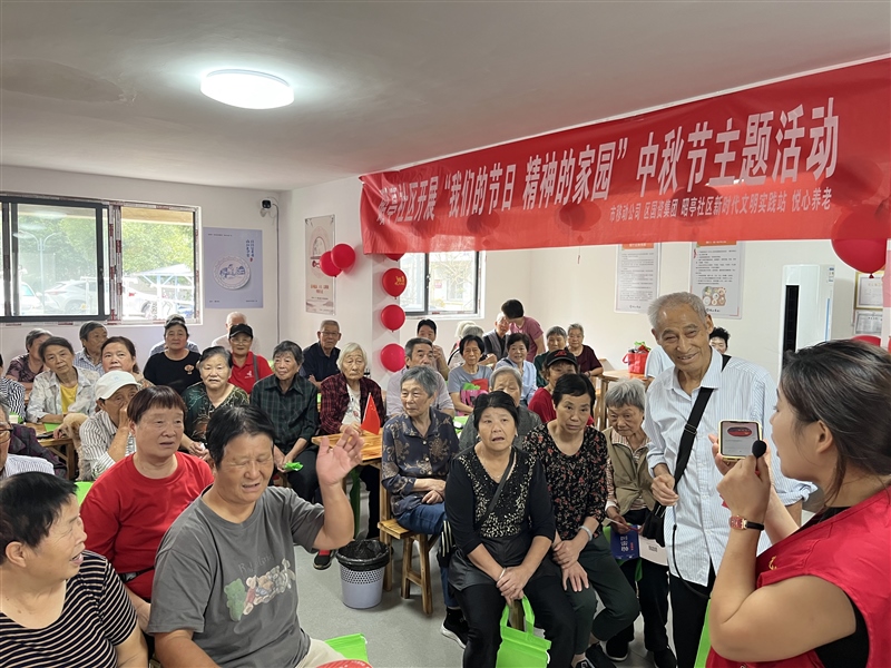 志愿者首先為大家講解中秋節(jié)的來歷、習(xí)俗以及神話故事等,隨后開展了猜謎領(lǐng)月餅趣味小活動(dòng),社區(qū)居民們踴躍參與,現(xiàn)場一片歡聲笑語。